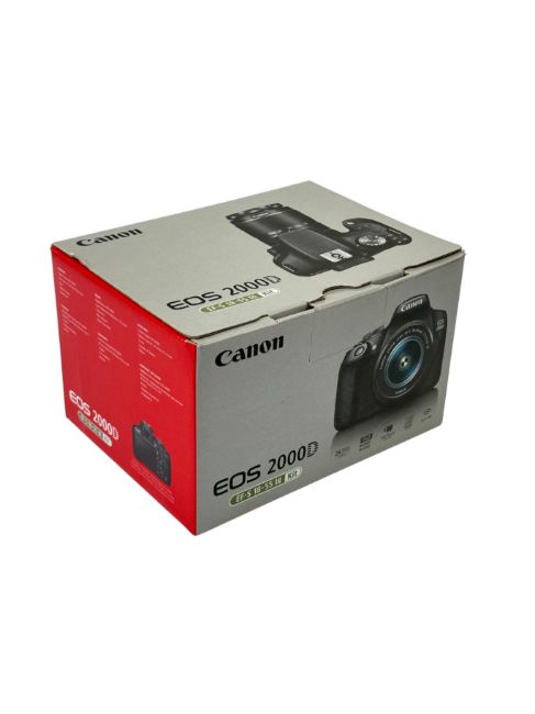 Pre-owned Canon EOS 2000D DSLR Camera with EF-S 18-55 mm f/3.5-5.6 III Lens, battery, battery charger and original box.