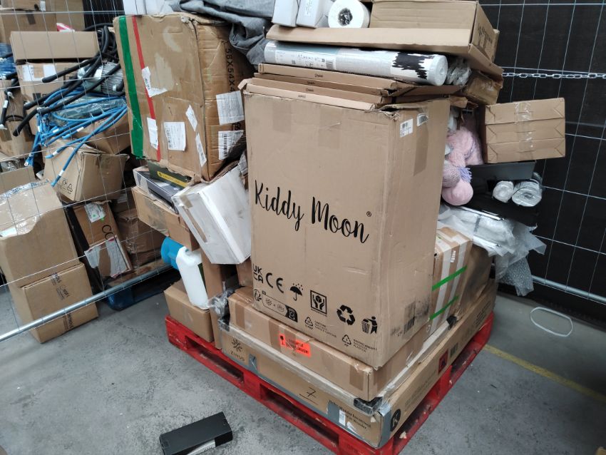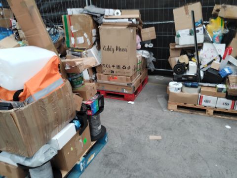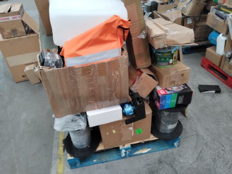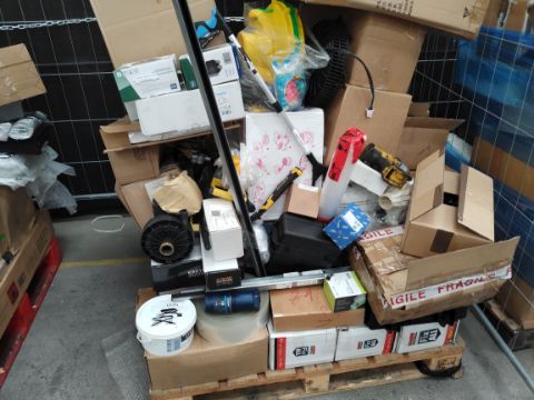 Two pallets of assorted commercial, industrial and related goods with one pallet of homeware and related goods.