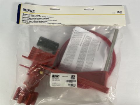 An as new Brady Universal Valve Lockout (Large - with 8" (2.43m) nylon cable and blocking arm).
