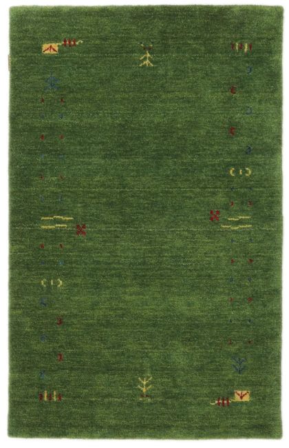 An as new Gabbeh Loom Frame - green wool rug, 160 x 100cm (stock image).