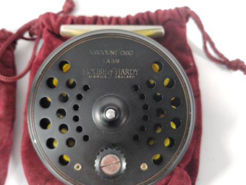 Two pre-owned House of Hardy items - a Hardy viscount disc LA 5/6 fly reel and a Hardy fly reel spool and line.