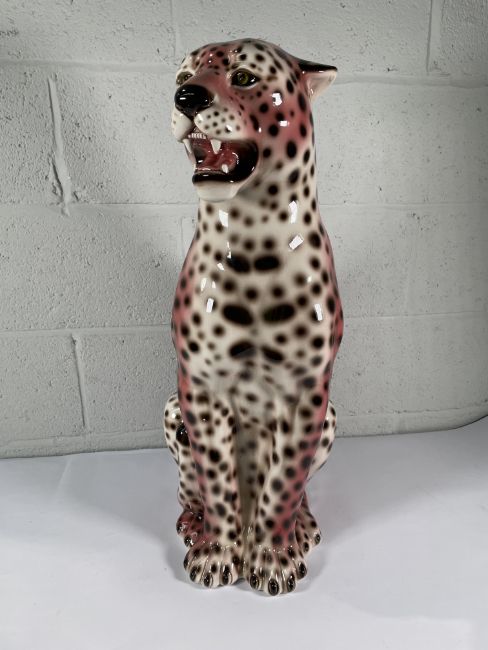 An as new Dogwood Lifestyle 'Frenchie' large ceramic leopard statue, pink.