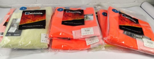 Five Lyngsoe Bib & Brace rainwear trousers 1 x 4XL yellow, 4 x XXL orange and two Lyngsoe rainwear jackets 1 x S orange, 1 x M yellow.