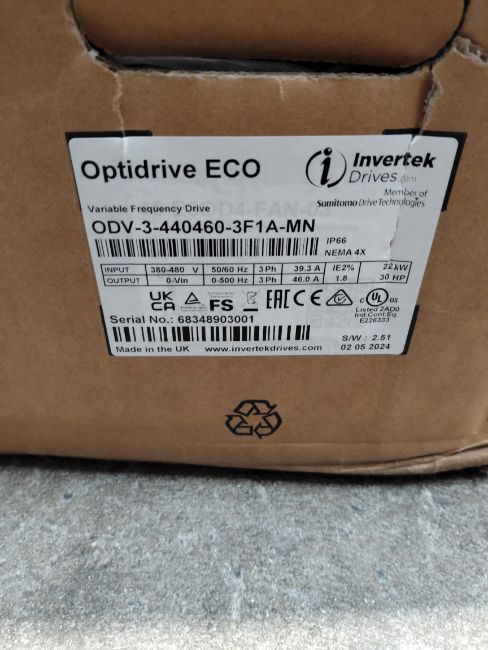 As new Optidrive ECO, Variable Frequency Drive (ODV-3-440460-3F1A-MN).