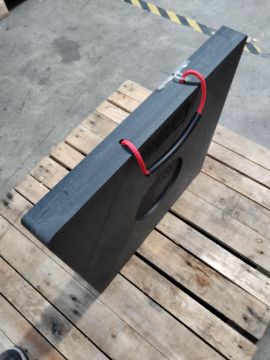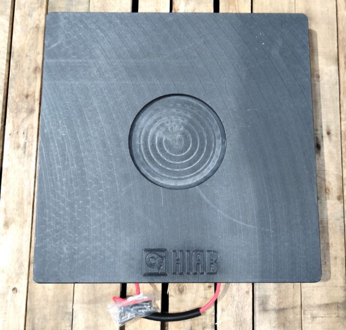 A Hiab outrigger recessed load spreader pad plate, size (H)59cm x (L)59cm x (D) 6cm.