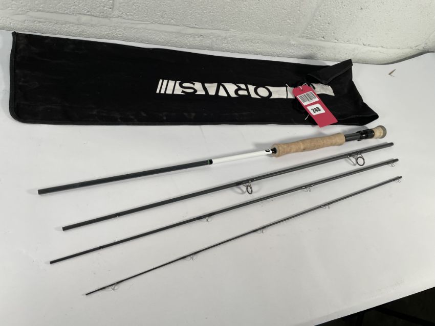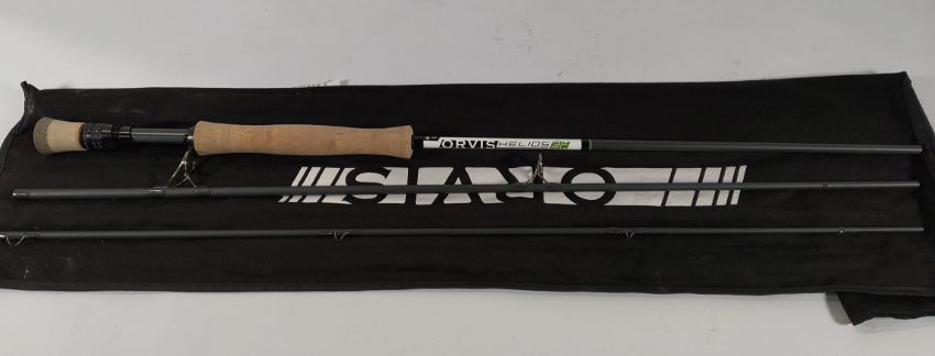 A pre-owned Orvis Helios 3F fly rod (Item has some damage, Tip hoop snapped off, Please refer to picture).