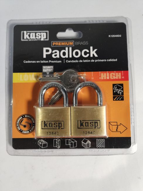 Eight as new packs of Kasp brass padlock 40mm (twin keyed alike sets).