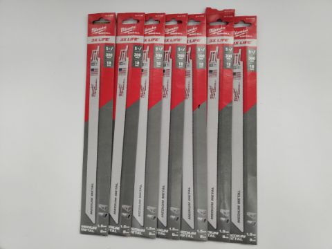 Seven as new Milwaukee Sawzall Reciprocating Saw Blades, Medium Metal, 1.5mm- 8mm, 300mm, 18TPI (48-47-5189).