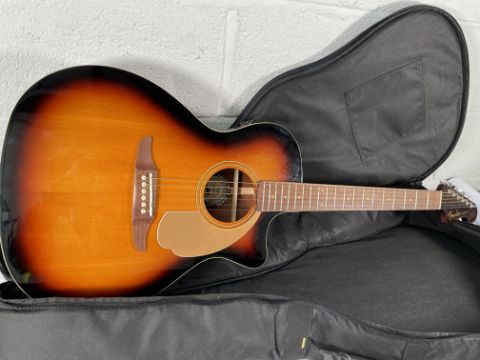 A pre-owned Fender Newporter Player electro acoustic, sunburst with gig bag.