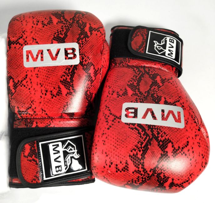 Seventeen assorted MVB Boxing related items, various colours and designs with drawstring bags - 13x pairs of boxing gloves 10oz/14oz and 4x pairs of training pad gloves.