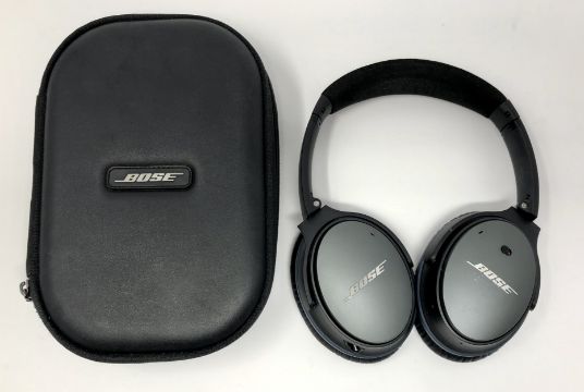 A pre-owned pair of Bose QuietComfort 25 Acoustic Noise Cancelling Headphones in Grey with case (A couple small scratches to casing).
