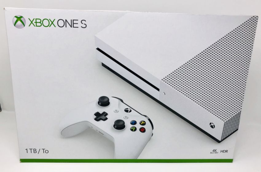A boxed as new Microsoft Xbox One S 1681 1TB Console (Box opened, some cosmetic damage to box).