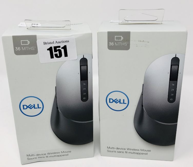 Two boxed as new Dell MS5320W Multi-device Wireless Mice (Boxes sealed, some cosmetic damage to packaging).