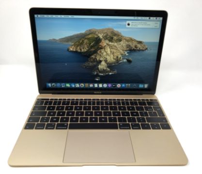 A pre-owned Apple MacBook 12" (Retina, Early 2015) in Gold with Intel Core M Dual-Core 1.1GHz Processor, 8GB RAM, 256GB SSD running mac OS Catalina (Serial: C02QJA3NGF84) (Wiped and reset. No power supply or other accessories included).