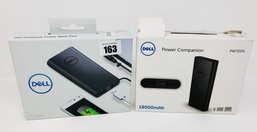 A pre-owned Dell PW7015L Notebook Power Bank Plus (65Wh) and a pre-owned Dell PW7015L Power Companion (18000 mAh) (Both in original boxes).