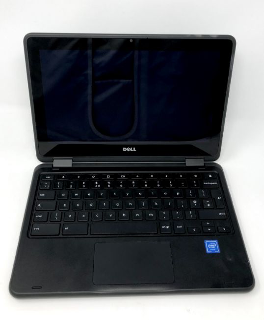 A pre-owned Dell Inspiron 3181 Chromebook 11.6" 2 in 1 Notebook with Intel Celeron N3060 CPU, 4GB RAM, 64GB eMMC running Chrome OS (Serial: 3ZZS3X2) (No power supply or other accessories included).