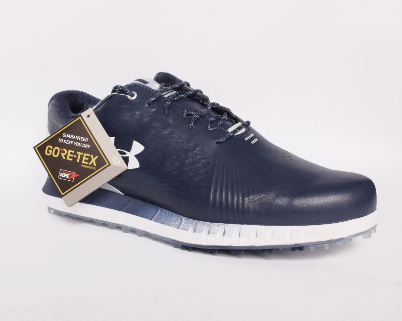 One pair of boxed as new Under Armour HOVR Show SL GTX E spike-less golf shoes in navy (UK 9.5).