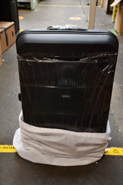 One boxed as new American Tourister Bon Air three piece luggage set in black (2547).