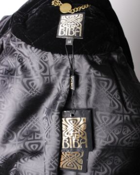 A Biba as new Leo short faux fur jacket (UK 14) and a Biba as new Lunar Eclipse quilted black velvet (UK 14) coat.