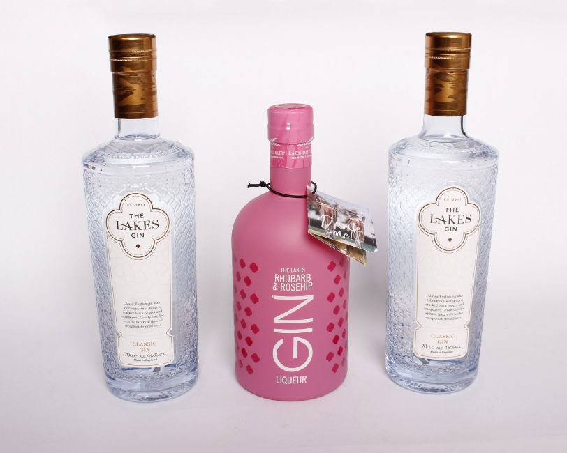 Two The Lakes classic gin (700ml), The Lakes Rhubarb & Rosehip gin Liqueur (700ml) (Over 18s only).