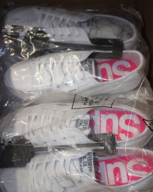 Six pairs of ladies' as new Superdry Low Pro sneakers in white (UK 5, 6 and 7).