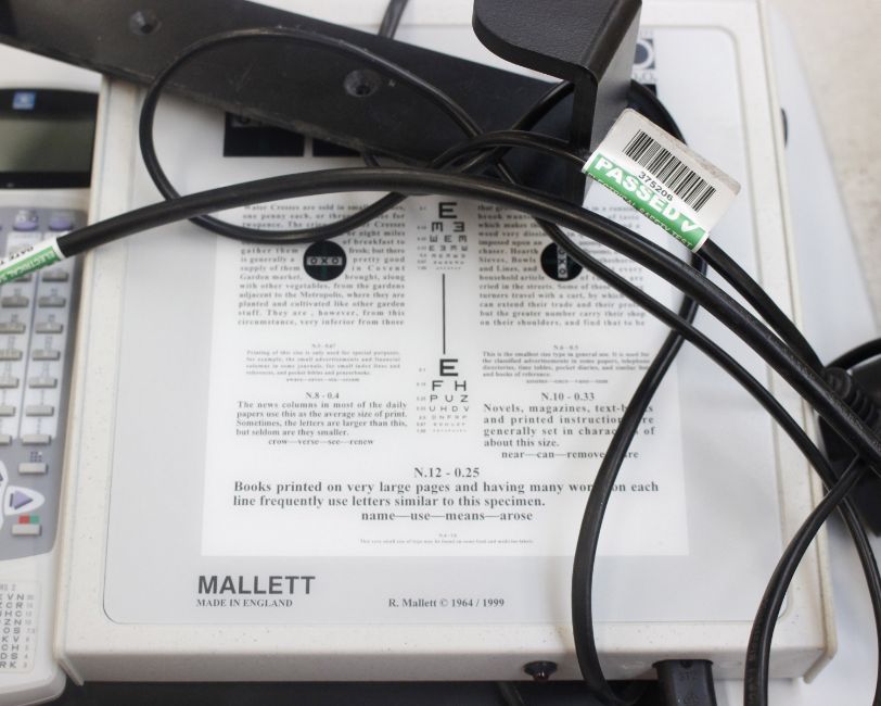 A Nidek SC-1600 system chart together with a Mallett I.O.O. unit.