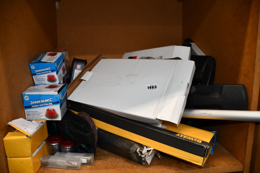 A quantity of miscellaneous as new hand tools and related items to include Mac Tools ball peen hammer, one Halfords Advanced screwdriver set and a Silverline stainless steel crimp cup.