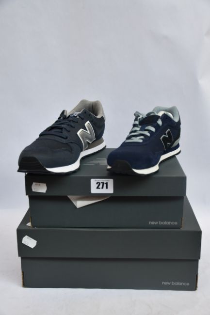 Two pairs of as new New Balance trainers; YC515CP (UK 2.5) and GM500NAY (UK 7.5).