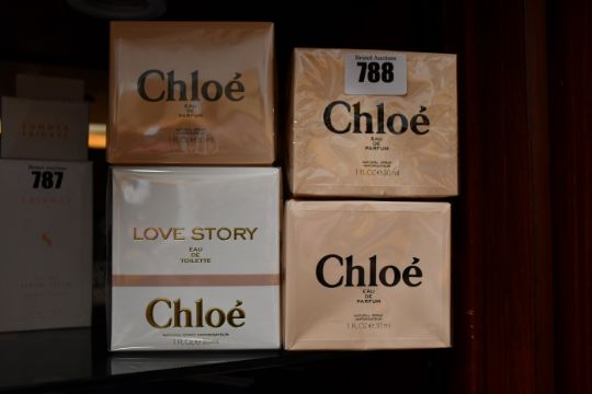 Three Chloe eau de parfum (30ml) and one Chloe Love Story eau de toilette (30ml), all boxed as new.