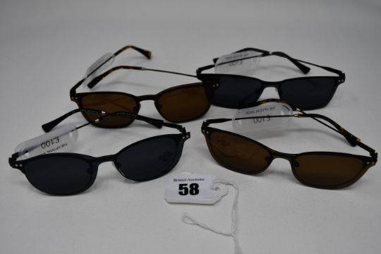 Four pairs of as new Convertibles glasses frames with clear glass and magnetic sunglasses clip (RRP £100 each).