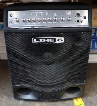 An as new unboxed Low Down Line 6 guitar amplifier (Slight damage to mesh speaker cover).