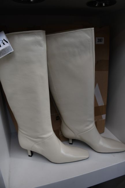A pair of as new Zara cream leather boots (UK 5 - RRP £159).
