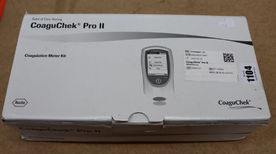 One boxed as new CoaguCheck Pro II coagulation meter kit.