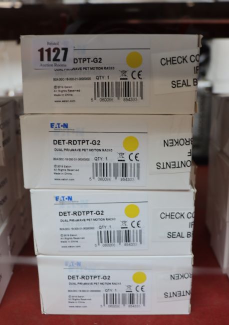 Ten boxed as new Eaton dual PIR/uWave pet motion radios (DET-RDTPT-G2 space protection).