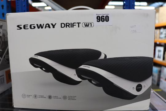 One pair of boxed as new Segway Drift W1 E-Skates in black and white.