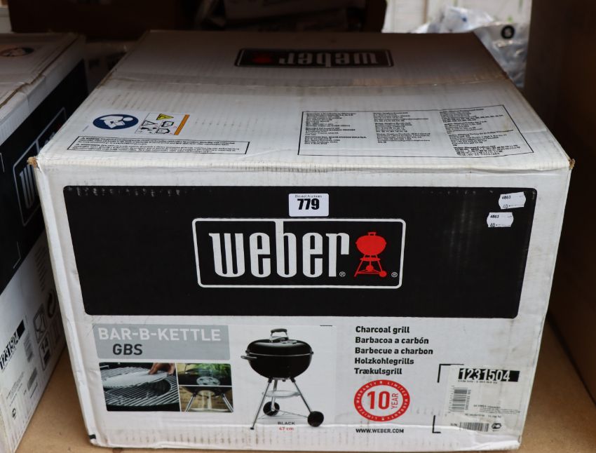 One boxed as new Weber Bar-B-Kettle in black (GBS).