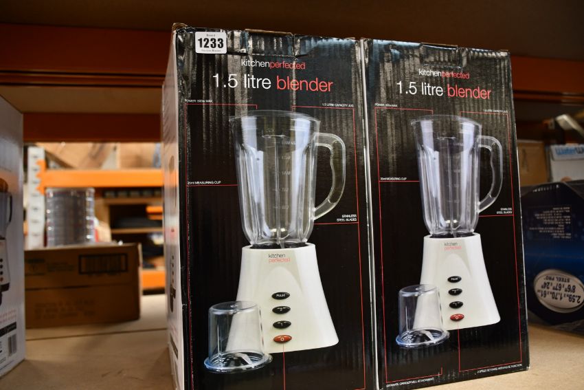 Four boxed as new Kitchen Perfected Table Blenders (1.5L).