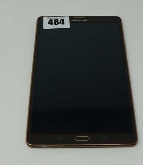 A pre-owned Samsung Galaxy TAB S 8.4 LTE 16GB SM-T705 in Titanium (IMEI: 354485060863748) (FRP Clear, Blacklist check clear) (Slight cosmetic damage to edge of casing) (No charger or other accessories in included).