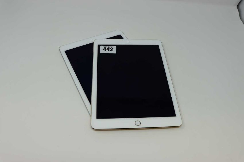 A pre-owned Apple iPad Air 2 (Wi-Fi Only) A1566 64GB in Gold (Serial: DMQNXTFRG5W0) (Small inscription to rear casing, some cosmetic damage to edges of casing) and a pre-owned Apple iPad Air 2 (Wi-Fi Only) A1566 32GB in Silver (Serial: DMPSWHR1HG5F) (Faulty display) (Both iCloud Activation Locked. Sold for parts only).
