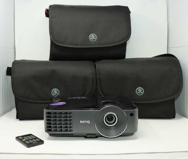 Three pre-owned BenQ MS502 DLP Projectors with cables and Tech Air carry cases.