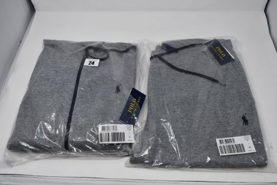 An as new Ralph Lauren men's summer 1 Grey full zip tracksuit hoodie top (S) and a pair of as new Ralph Lauren men's summer 1 Grey jogging bottoms (M).