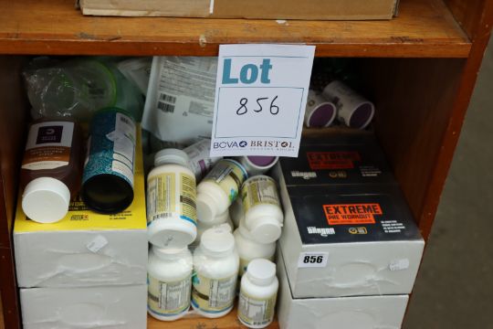 A large quantity of health and fitness supplements to include Little Dragon extreme multipack pre workout shots, one Bulk powders creatine monohydrate powder bag (500g) and one Active food zero calorie syrup.