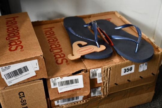 Twelve pairs of Havaianas slim women's flip flops (UK 6/7).