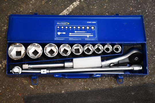 A metal cased Blue Point 400mm socket set with nine sockets.