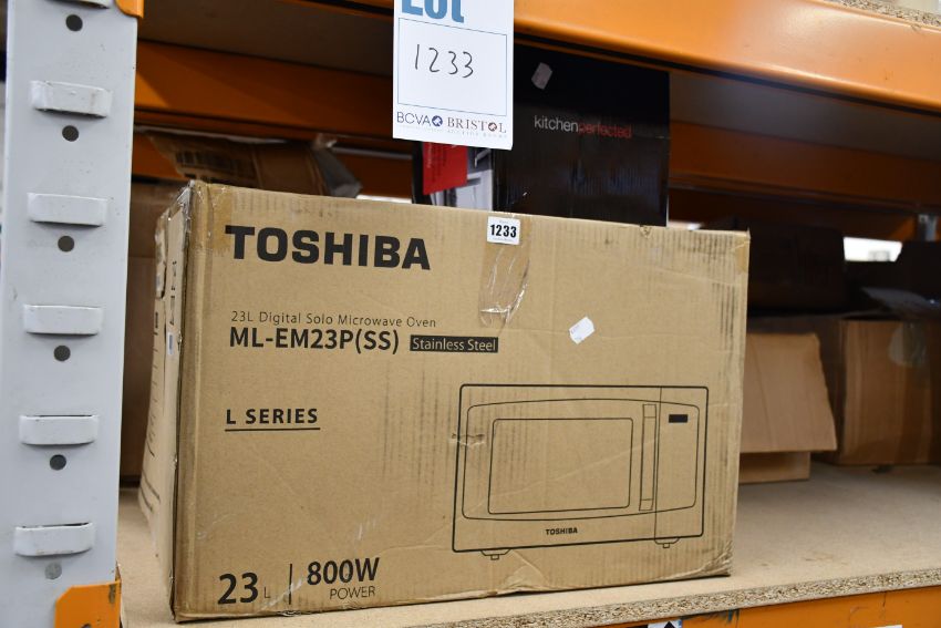 One boxed Kitchen Perfected 1 litre deep fryer (Model no. E6010WI) and one boxed Toshiba 800 microwave (Model no.ML-EM23P-SS).