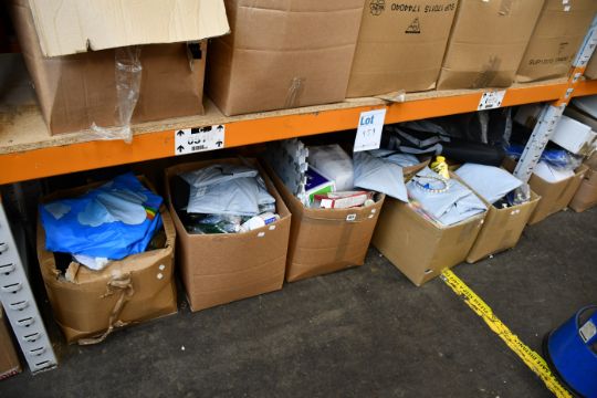 Seven boxes of miscellaneous items to include household goods, food supplements, printer ink cartridges and children's paddling pools.