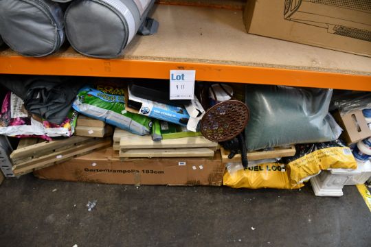 A quantity of miscellaneous garden related items to include one Al Fresco chiminea, Clear Waters solution against blanket weed, chainsaw blades and compost.