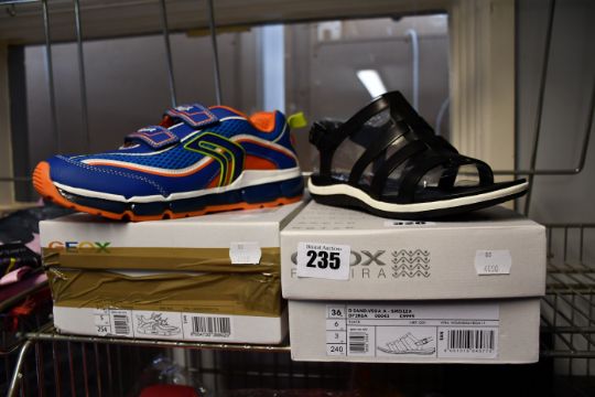 Two pairs of Geox Respira footwear; Android trainers (UK 5) and Sand Vegas sandals (UK 3).