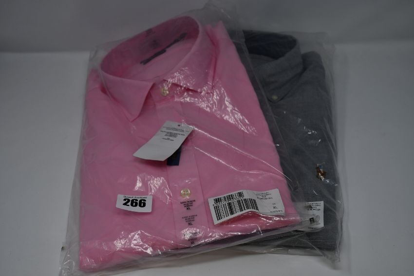 Three as new Ralph Lauren shirts; two pink (S, XL - RRP £60 each) and a slate coloured (S - RRP £65).