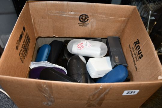A box of pre-owned glasses to include reading glasses, sunglasses and accessories.